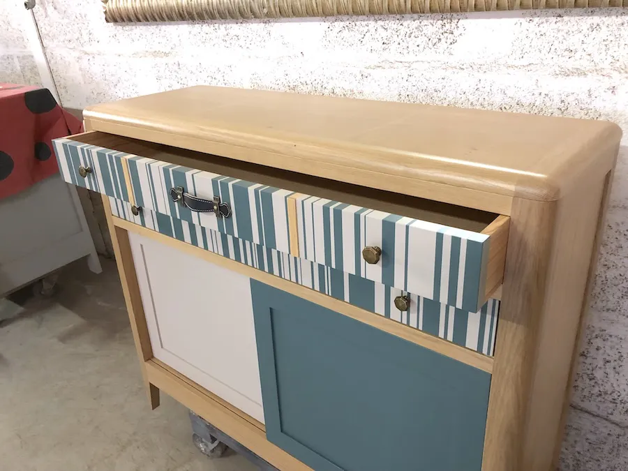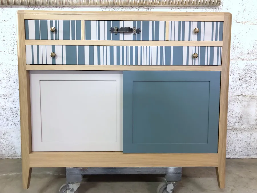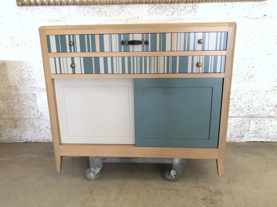 Bibus 2 tiroirs Louisiane 2 portes coulissantes gris & bleu