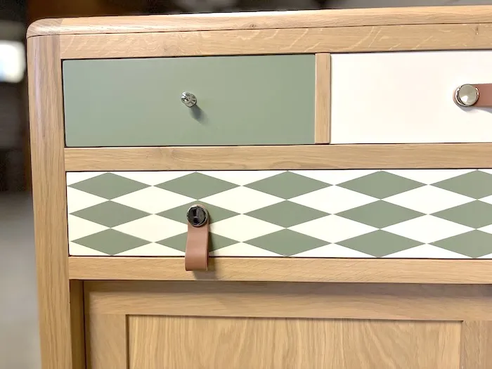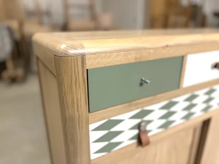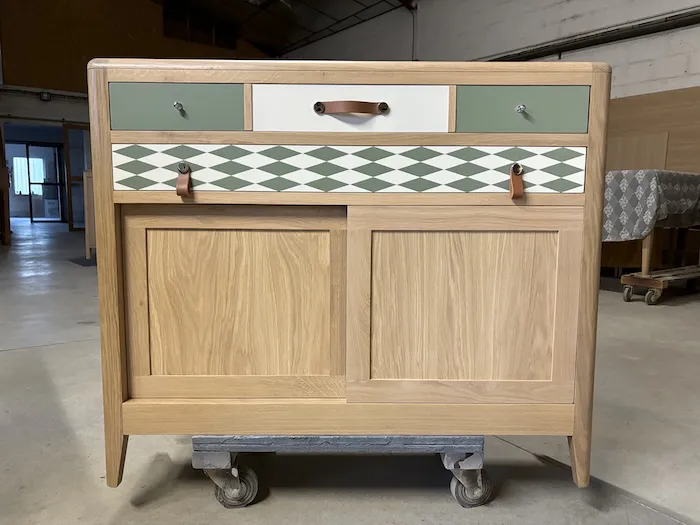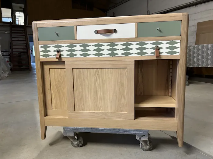 Bibus 2 tiroirs Louisiane 2 portes coulissantes olive & ivoire