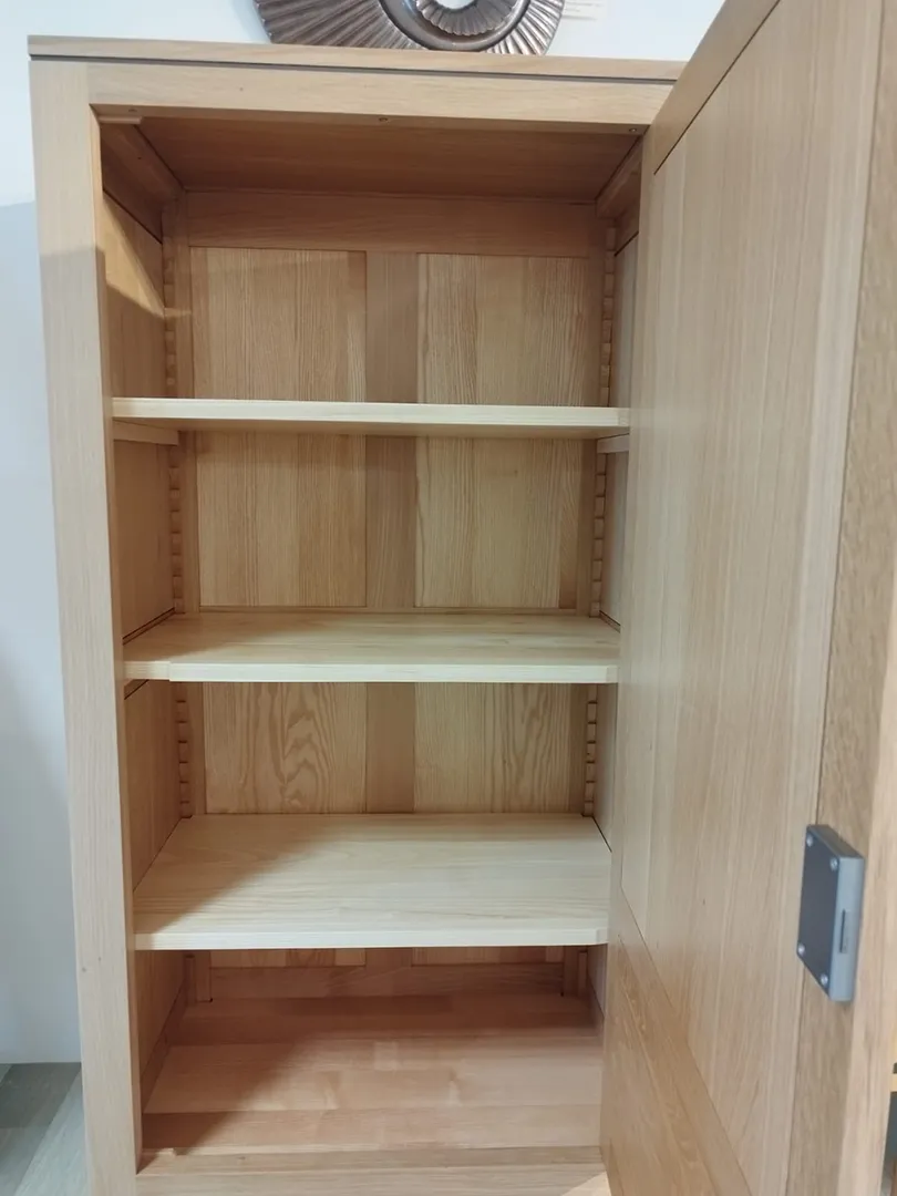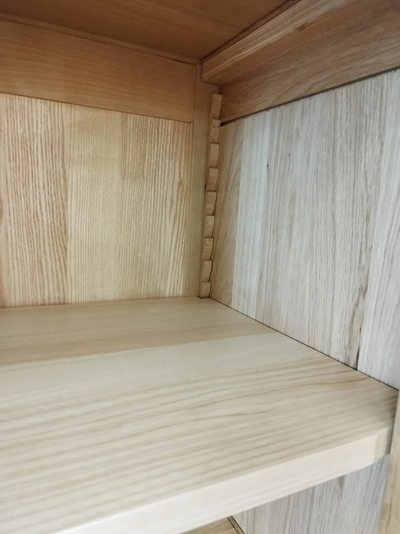 Les étagères sont toutes réglables sur crémaillères bois.