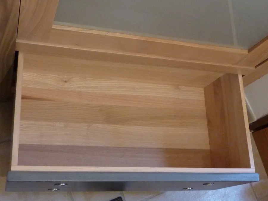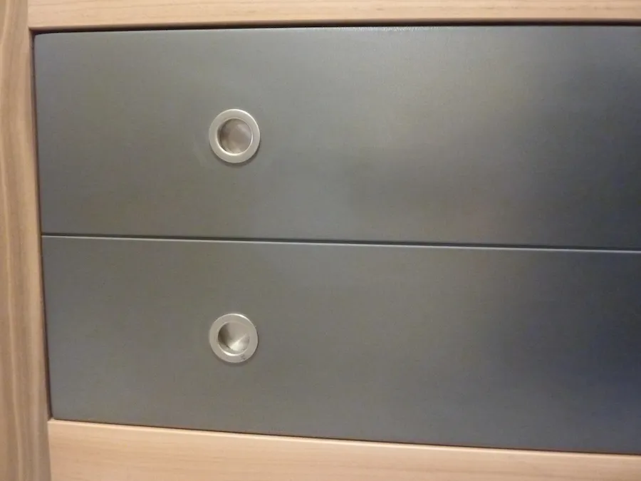 Face tiroir peinte en « inox »
