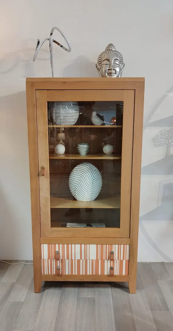 Tiroir peint façon « code-barres » pêche et ivoire… à personnaliser !