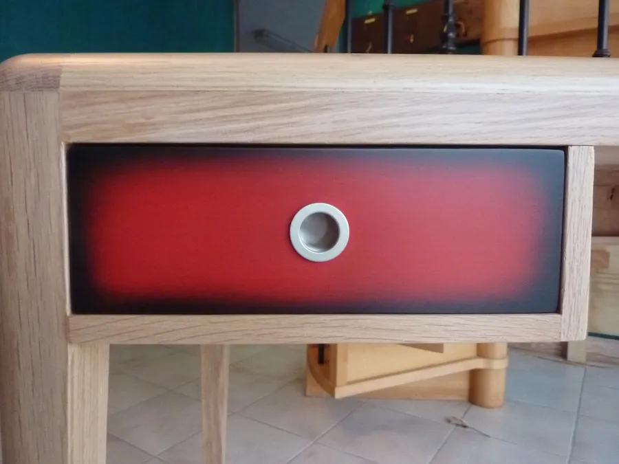 Finitions: teinte « brute mate », tiroirs en rouge sang essuyé noir