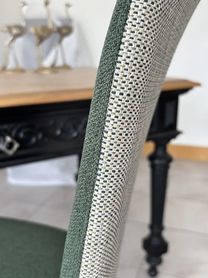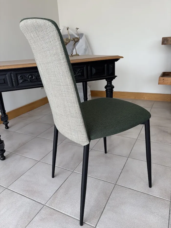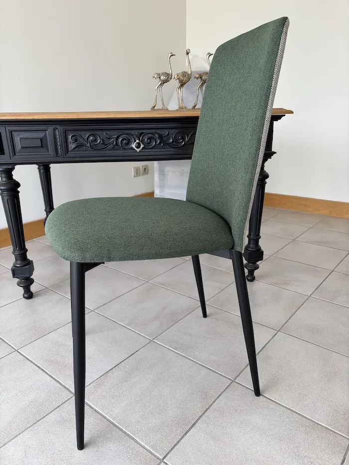 Tissus Tulum 48 et Cali 758, lavable à l’eau. Personnalisez votre chaise parmi une large sélection de tissus.