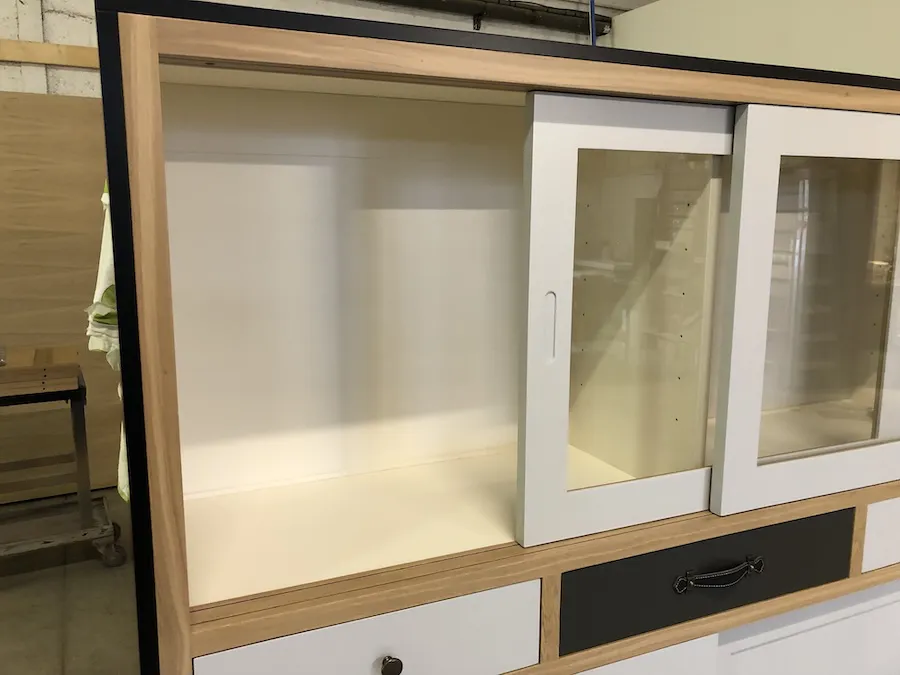 4 portes coulissantes, 3 tiroirs sur rails avec amortisseur de fin de course