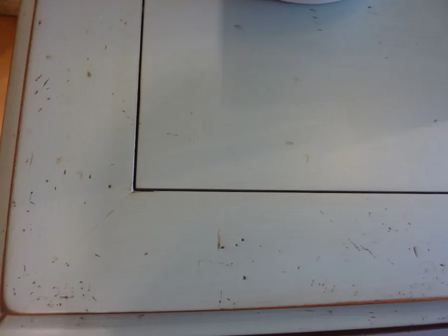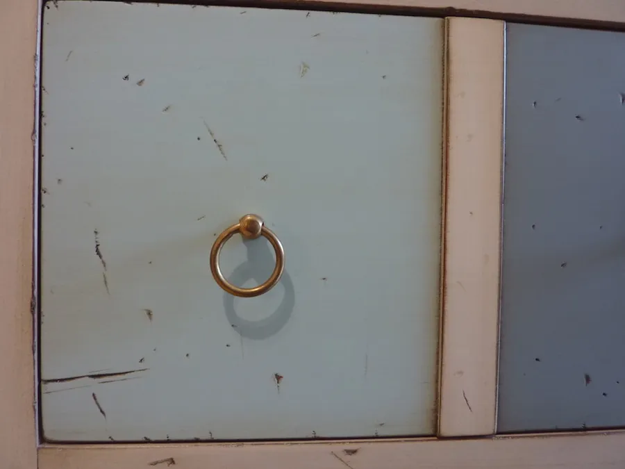 Finitions: tout autour du bleu, vieilli d’antan, arêtes usées
