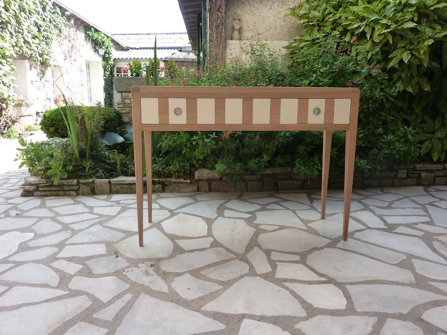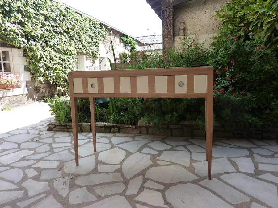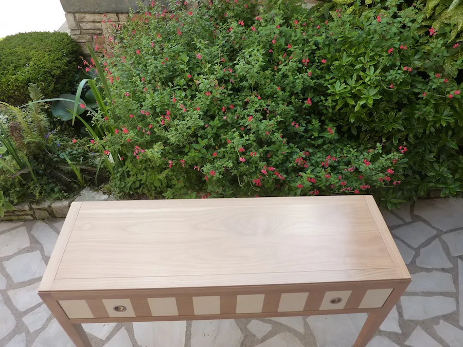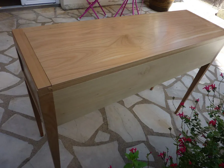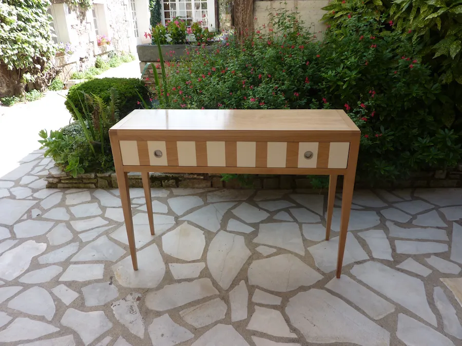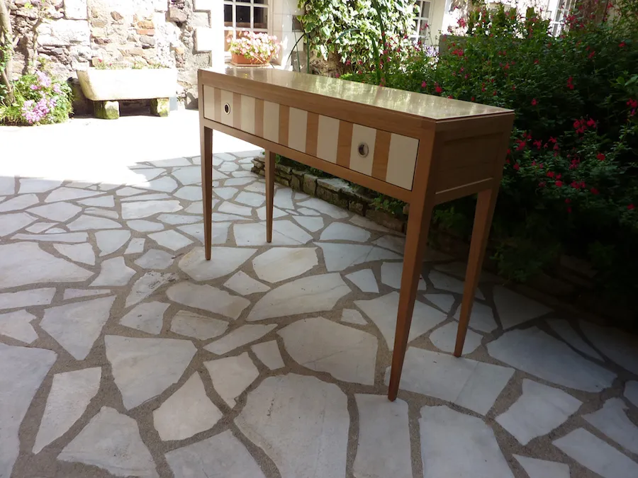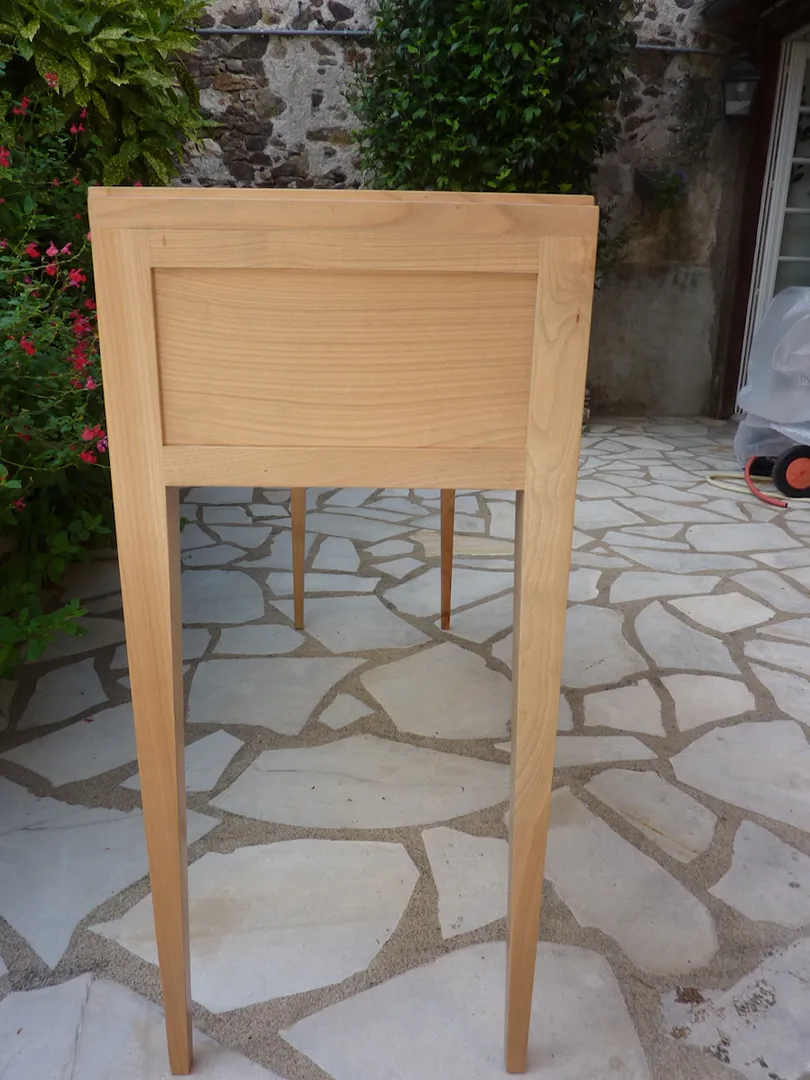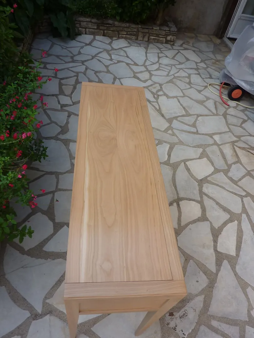 Les éléments extérieurs sont en merisier massif français, les éléments intérieurs, arrière et fonds, en bois massifs divers du pays (châtaignier, frêne, hêtre, …)