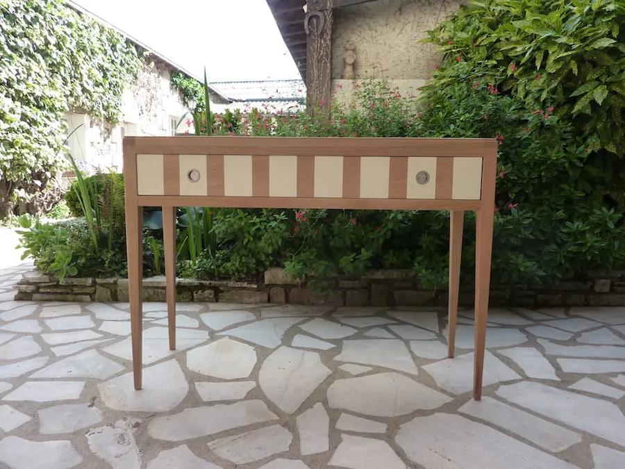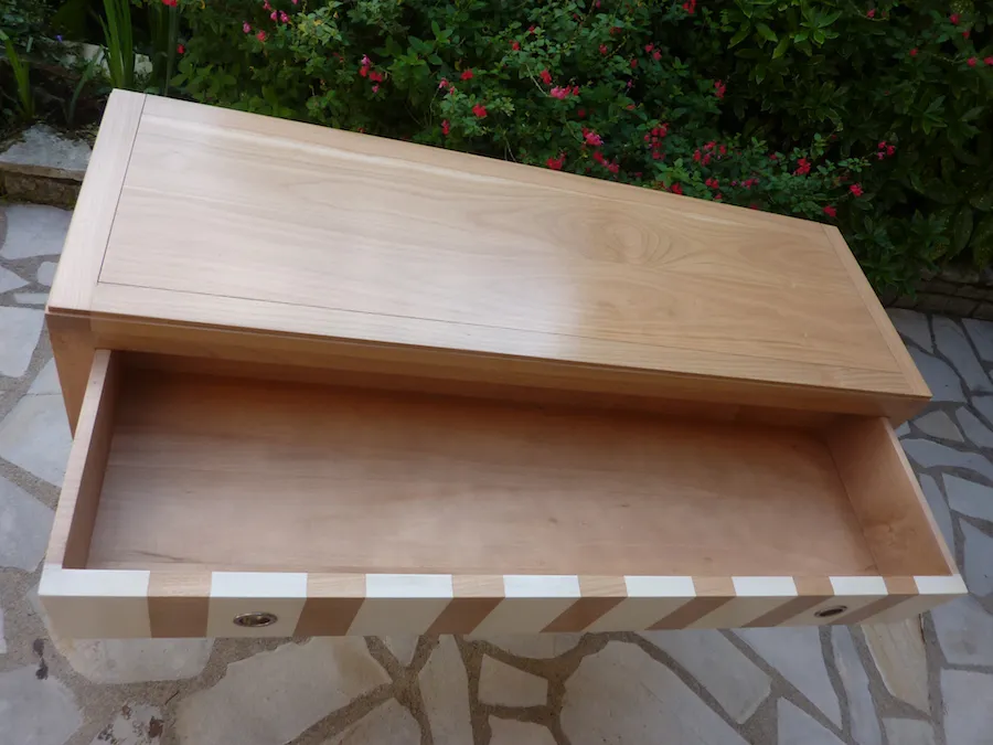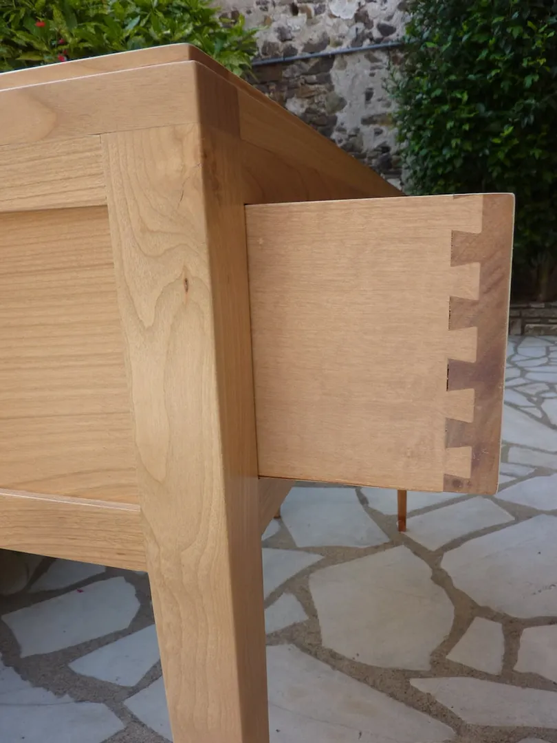 Tiroir à queue d’aronde, assemblage tenon, mortaise et cheville. Conception résistante.