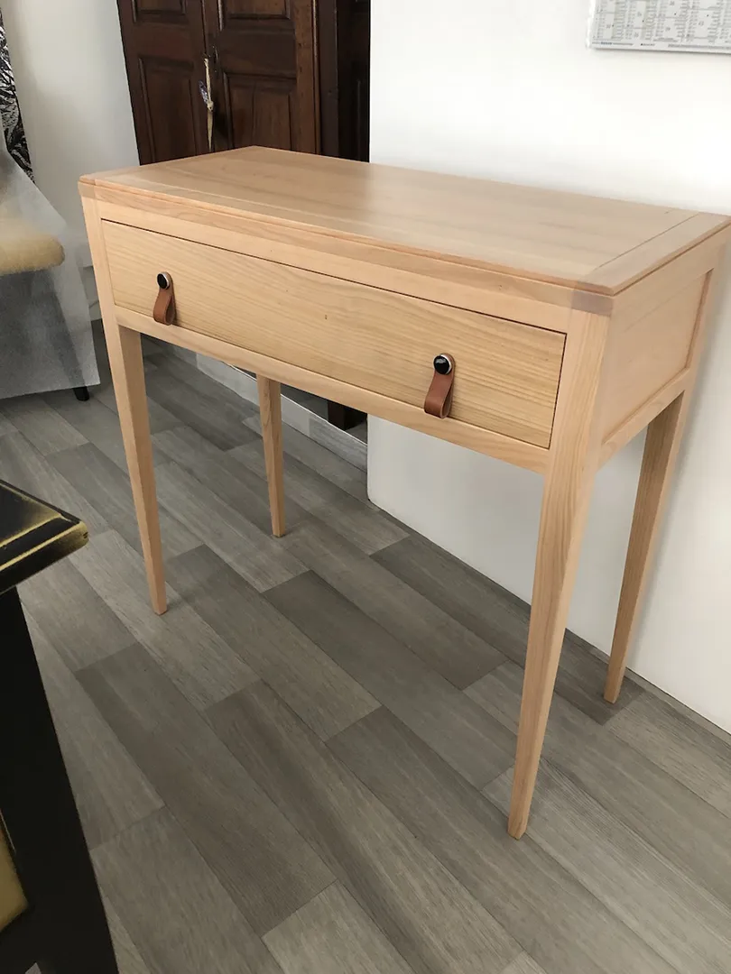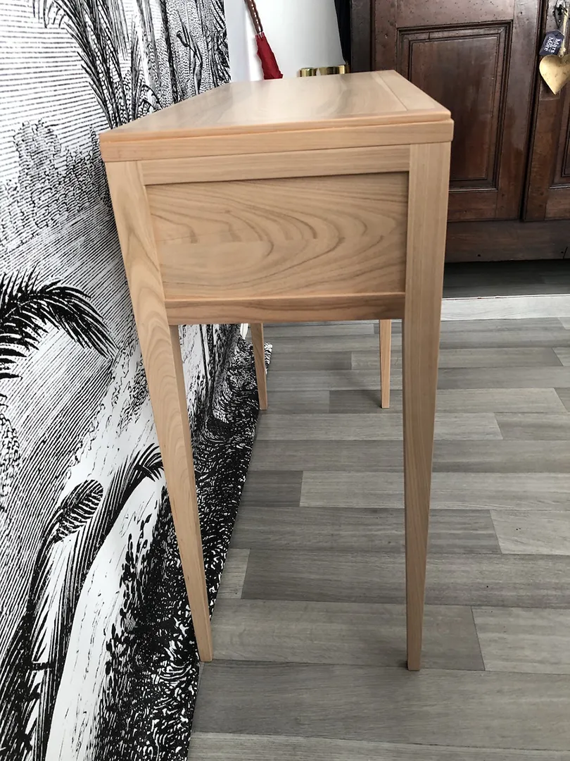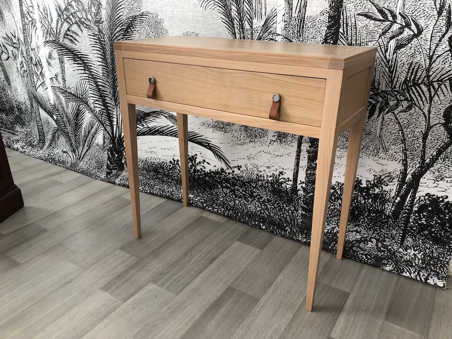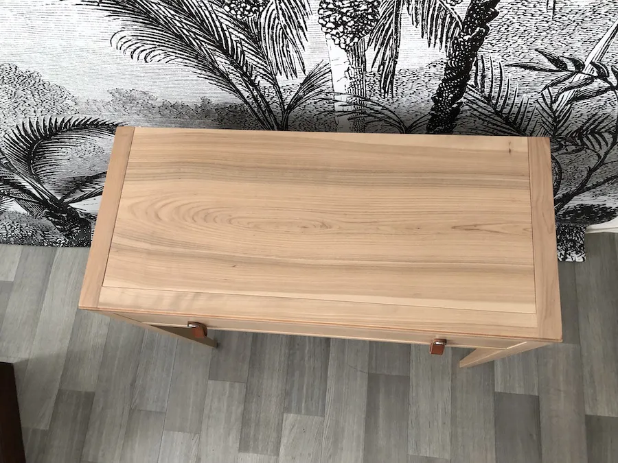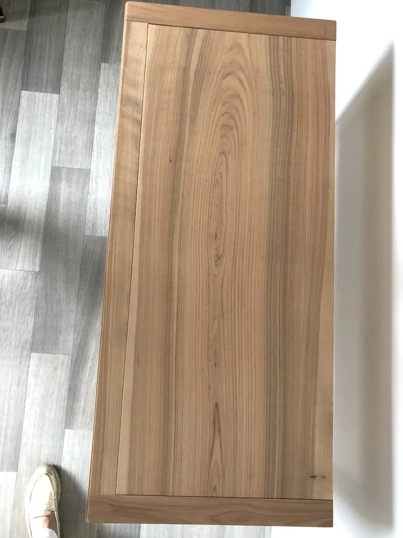 Les éléments extérieurs sont en merisier massif français, les éléments intérieurs, arrière et fonds, en bois massifs divers du pays (châtaignier, frêne, hêtre, …)