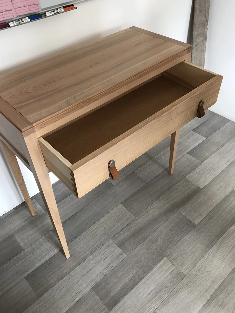 Tiroir à queue d’aronde, assemblage tenon, mortaise et cheville. Conception résistante.