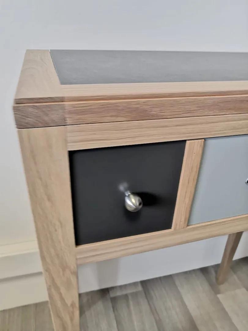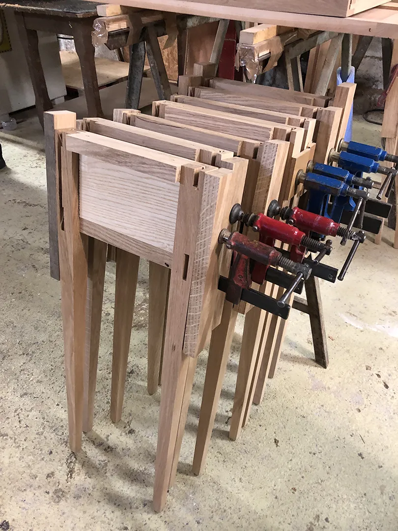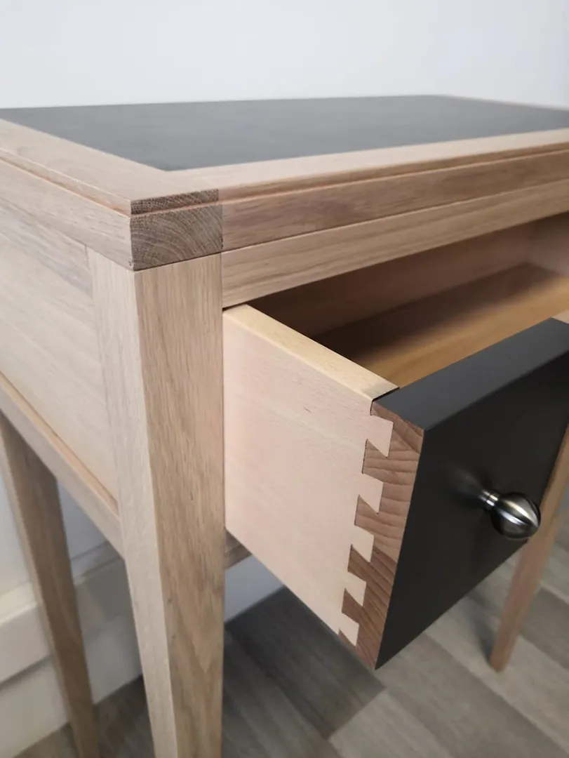 Tiroir à queue d’aronde, assemblage tenon, mortaise et cheville. Conception résistante.