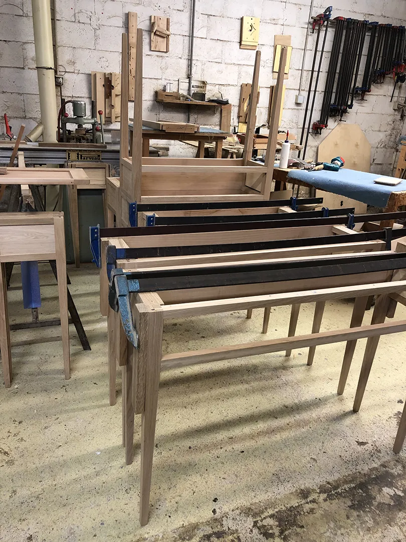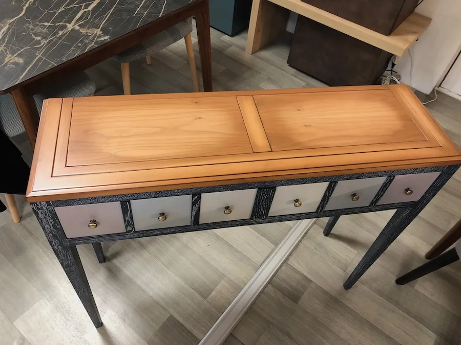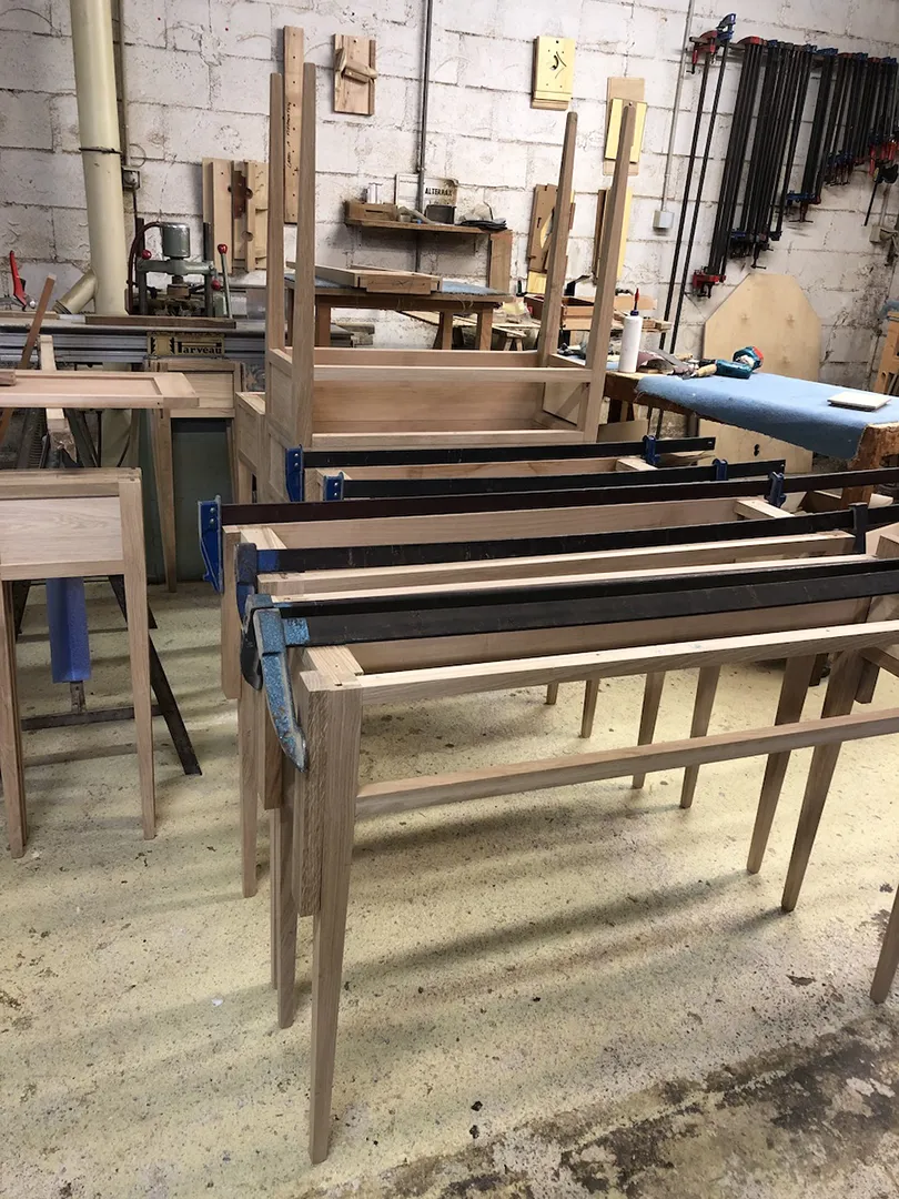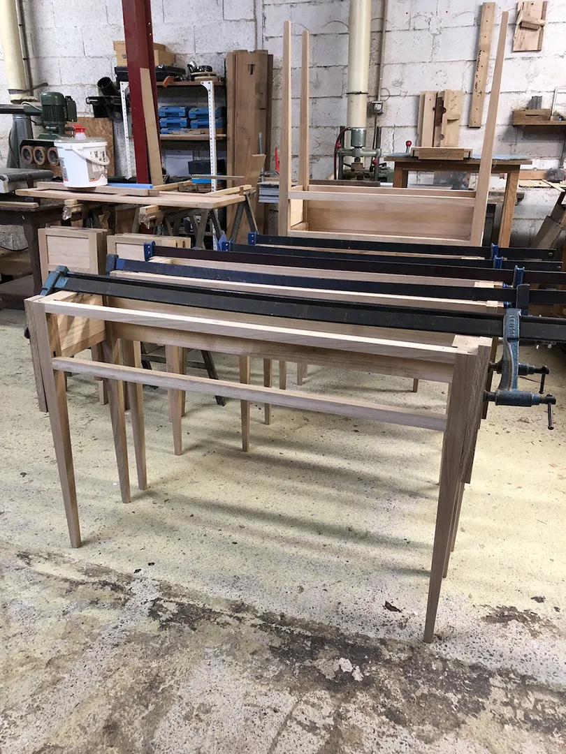 Les éléments extérieurs sont en merisier massif français, les éléments intérieurs, arrière et fonds, en bois massifs divers du pays (châtaignier, frêne, hêtre, …)