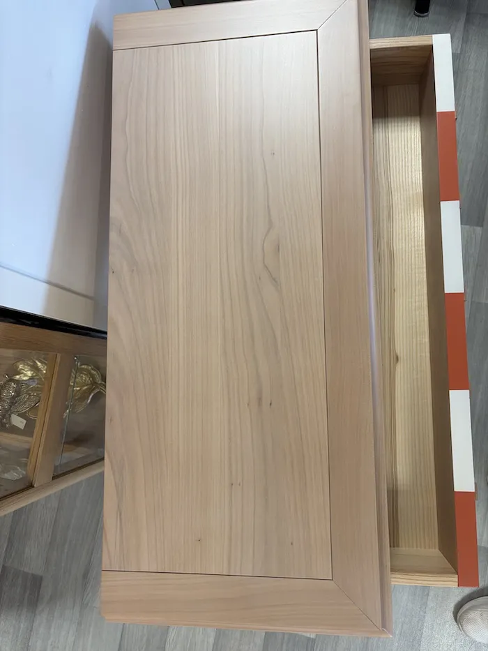 Tiroirs à queue d’aronde, assemblage tenon, mortaise et cheville. Conception résistante.