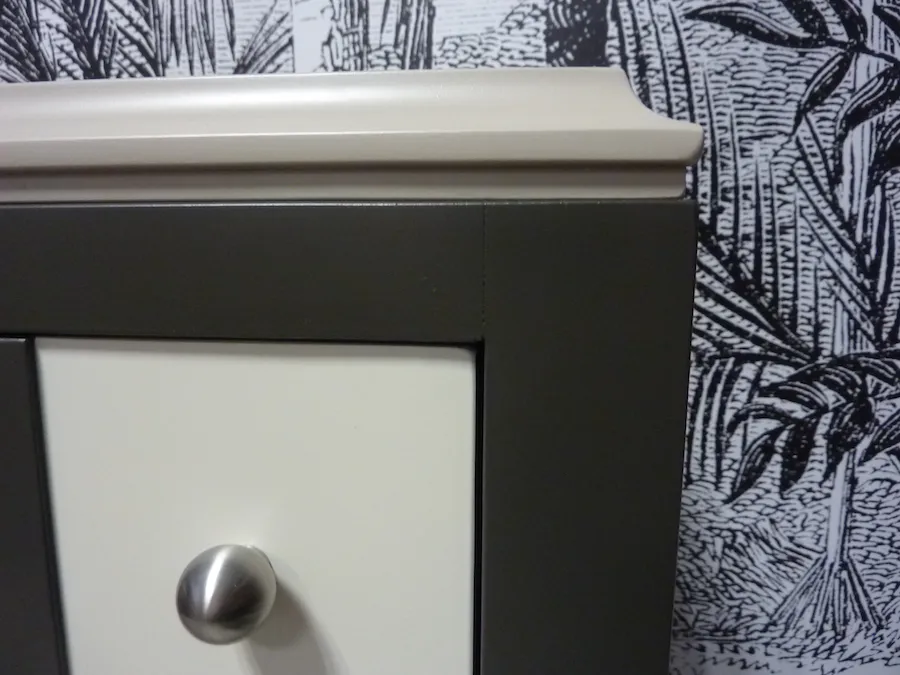 Finitions : teintes ivoire et « gris terre d’ombre », « gris terreux », non vieillie.
