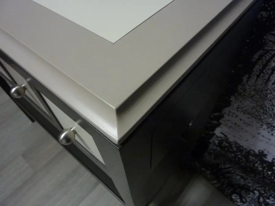 Les éléments extérieurs sont en merisier massif français, les éléments intérieurs, arrière et fonds, en bois massifs divers du pays (châtaignier, frêne, hêtre, …)