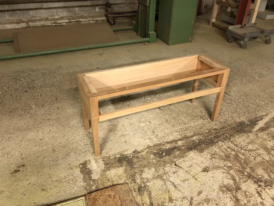 Les éléments extérieurs sont en merisier massif français, les éléments intérieurs, arrière et fonds, en bois massifs divers du pays (châtaignier, frêne, hêtre, …)