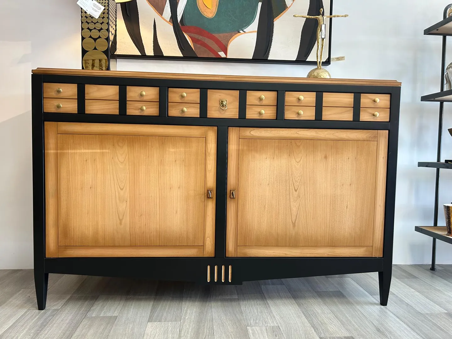 Enfilade 2 portes, 3 tiroirs sur sur coulisses bois. 2 étagères réglables sur crémaillère.