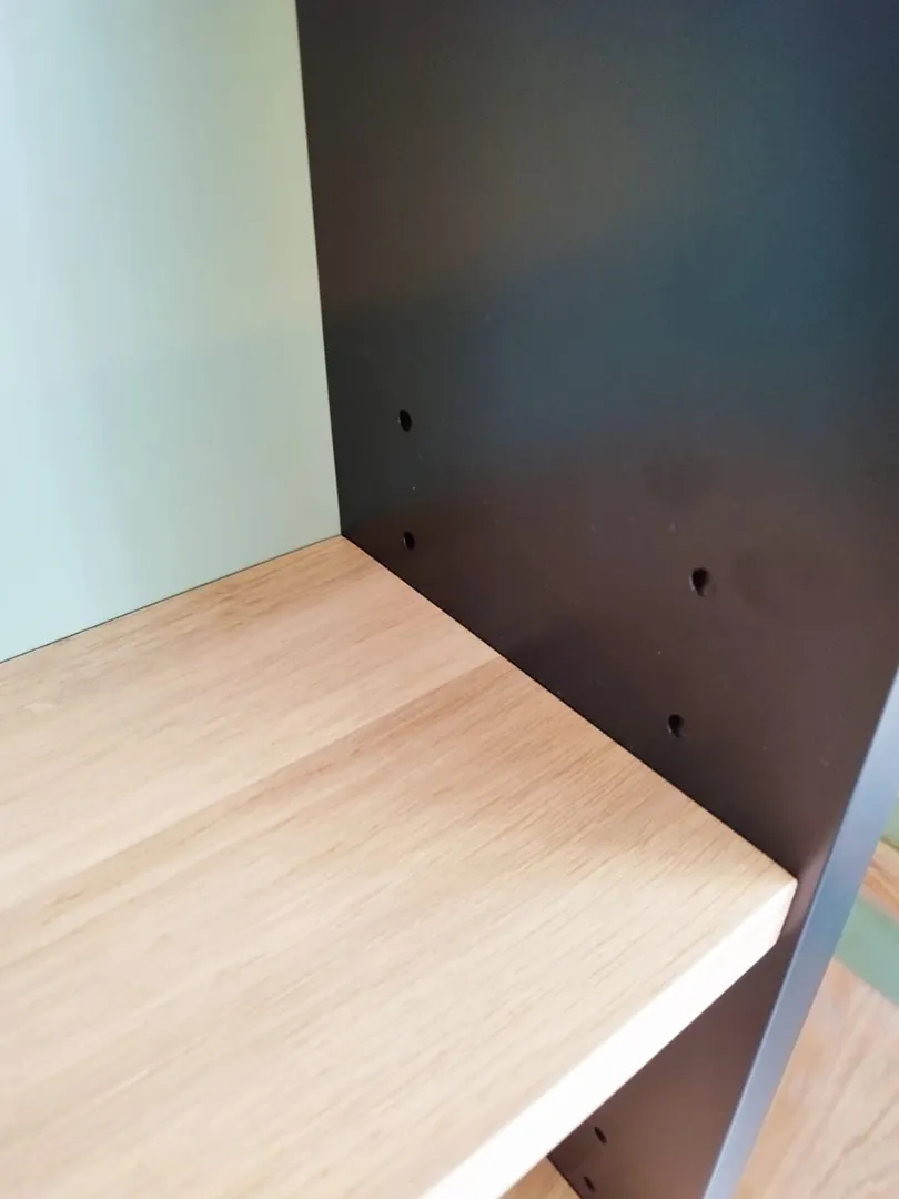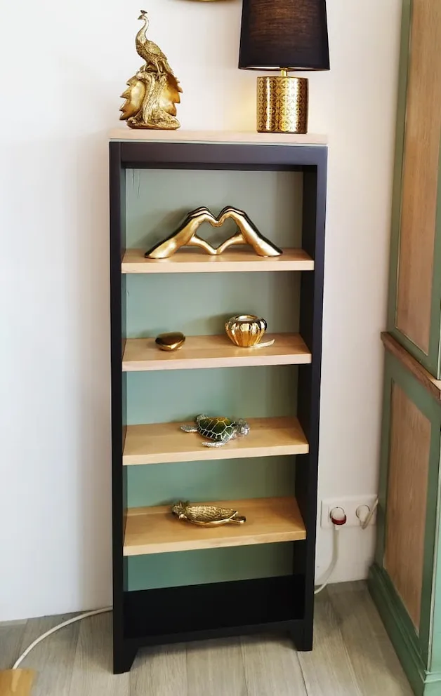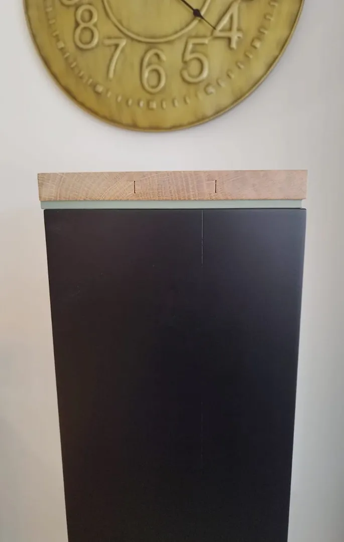Finition peinte en noir mate et vert sauge. Finition brute mate