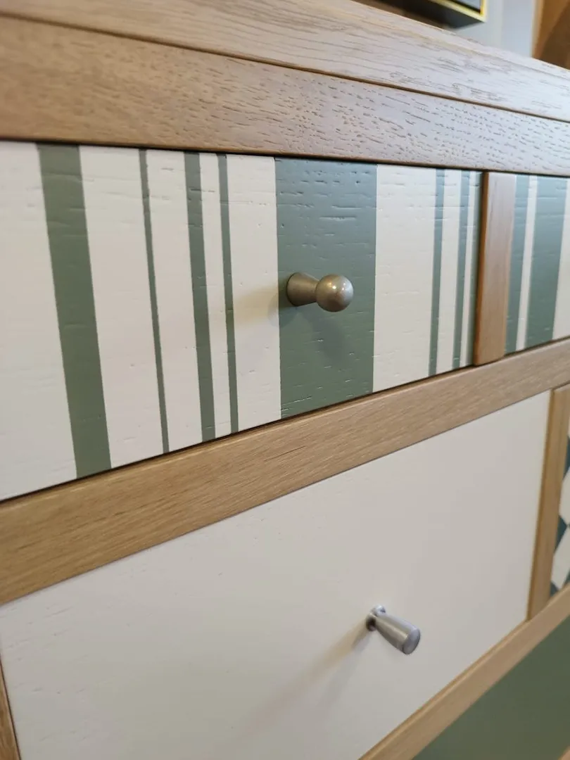 Finition : teinte brute mate, peintures « sauge », ivoire et « salvia »