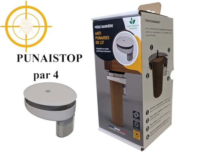 Piège anti-punaises de lit. C’est un dispositif réutilisable et recyclable, conçu pour être placé sous les pieds de sommier. Il a un fonctionnement entièrement mécanique et ne nécessite pas de produits chimiques, conformément à une approche sans pesticides. La conception comprend des parois externes rugueuse pour facilité la montée des punaises et internes spécialement conçues pour empêcher les punaises de grimper et de s’échapper, et un réservoir transparent amovible pour une détection facile. L’installation est facile et rapide, ne nécessitant aucun outil.