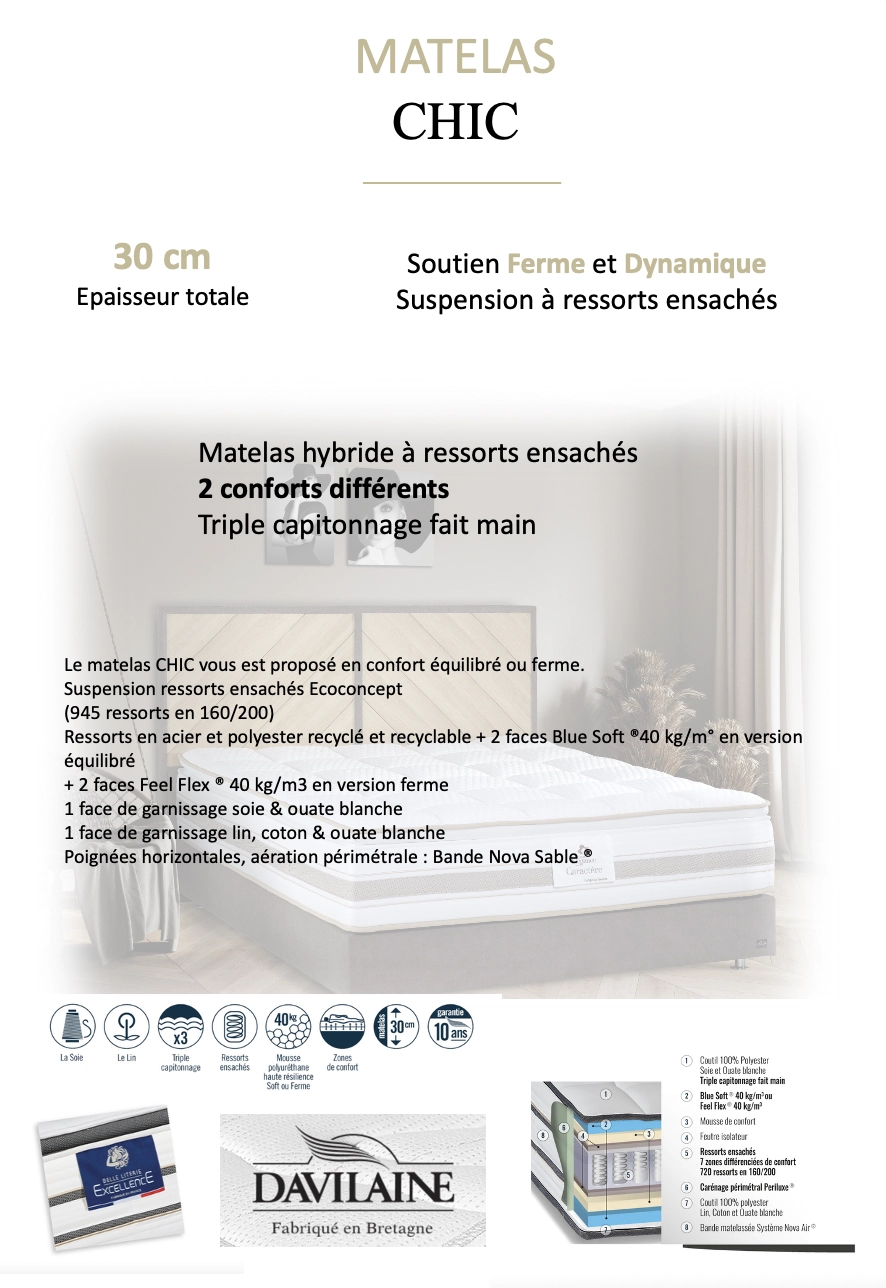 Le matelas CHIC vous est proposé en confort équilibré ou ferme.