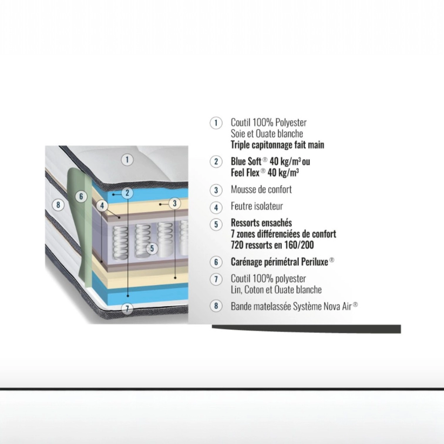 Ressorts en acier et polyester recyclé et recyclable + 2 faces Blue Soft ®40 kg/m° en version équilibré