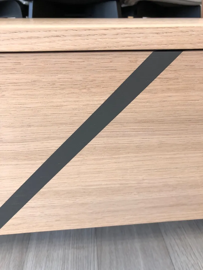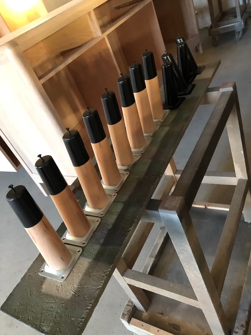 Les éléments extérieurs sont plaqués chêne, les éléments intérieurs, arrière et fonds, en bois massifs divers du pays (châtaignier, frêne, hêtre, …)