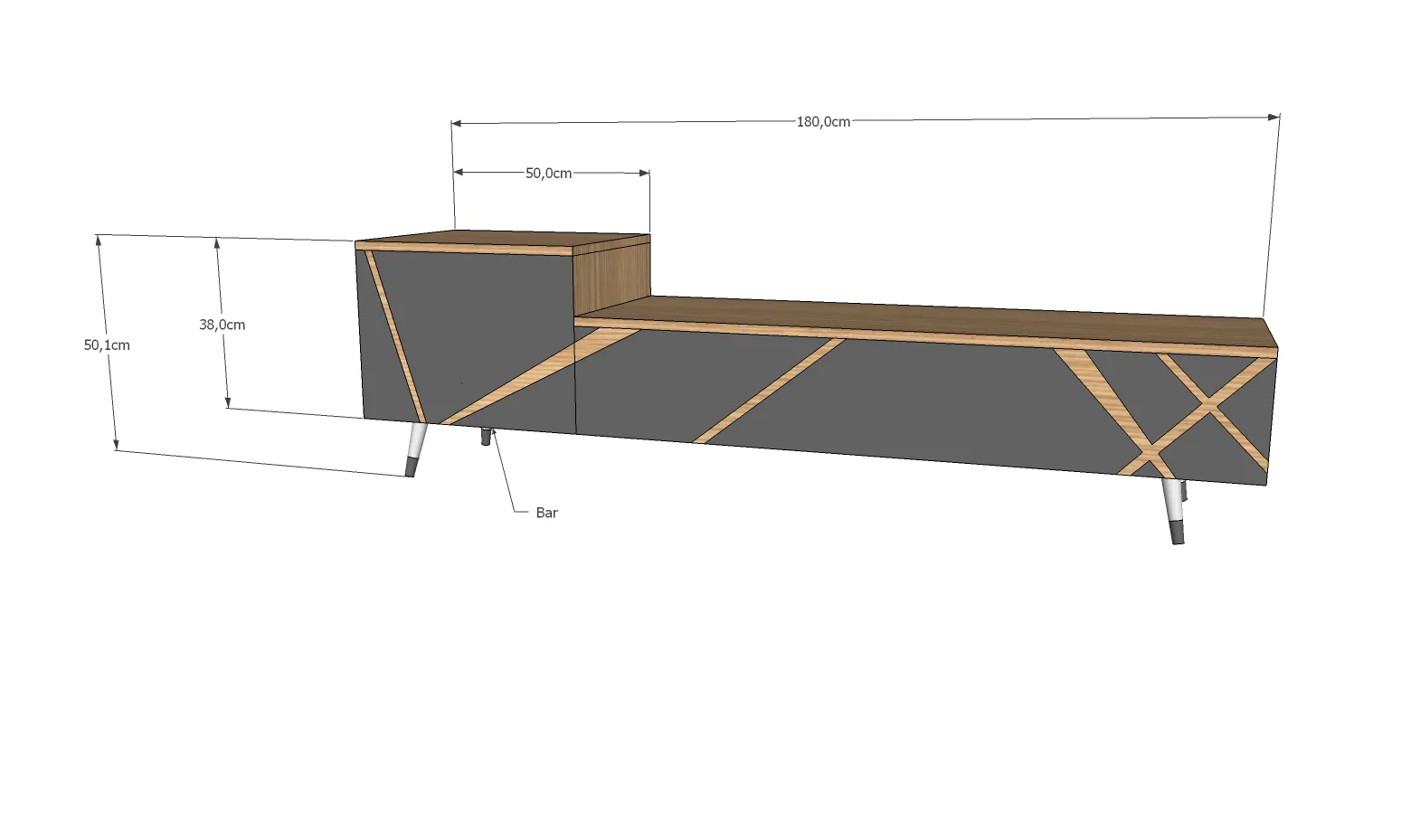 Plateau L50 cm sur partie haute et L130 sur partie basse