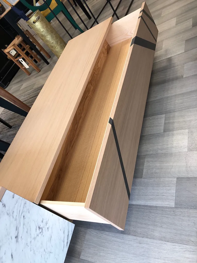 Dimensions grand tiroir (sur glissières métalliques) : L124 P32 H15 cm