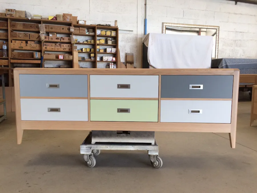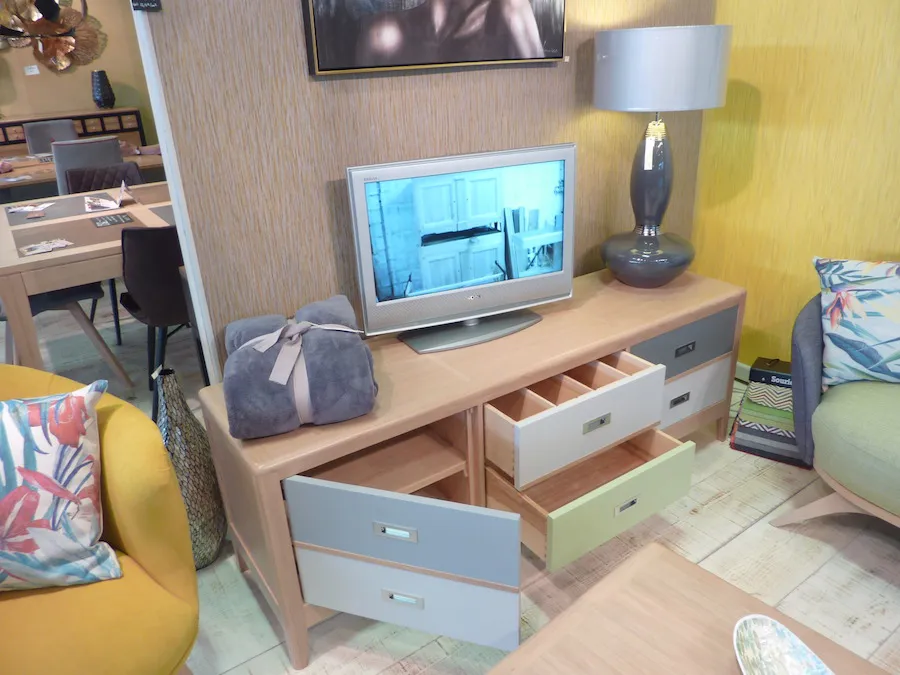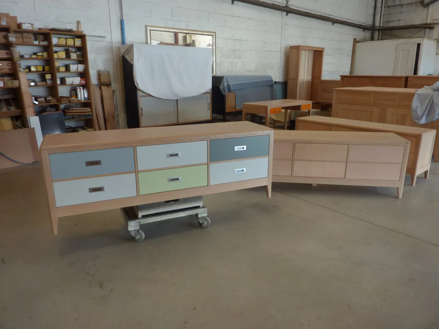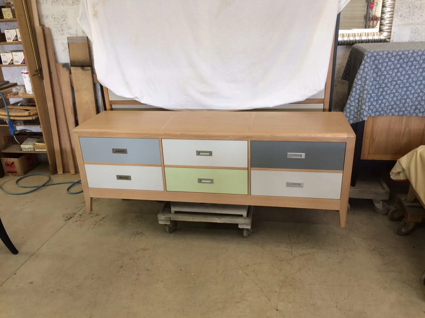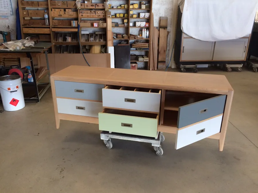 2 tiroirs sur coulisses métal , dimensions intérieures tiroir : L13,5 P48 H13,5 cm