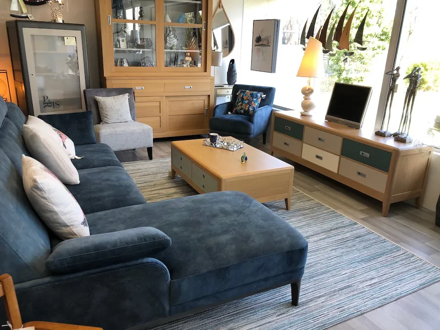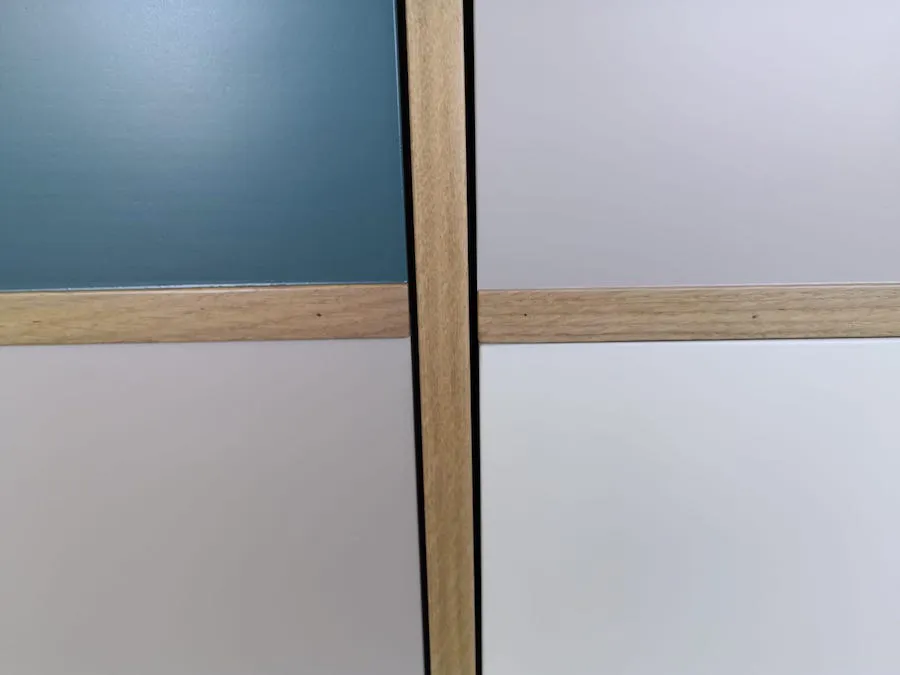 Finition teinte « brute mate », peinture « bleu salvia », « gris terreux » et « ivoire »