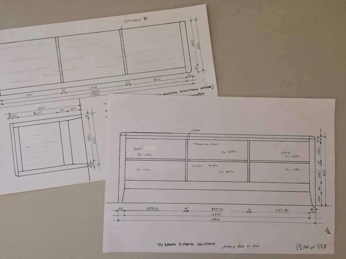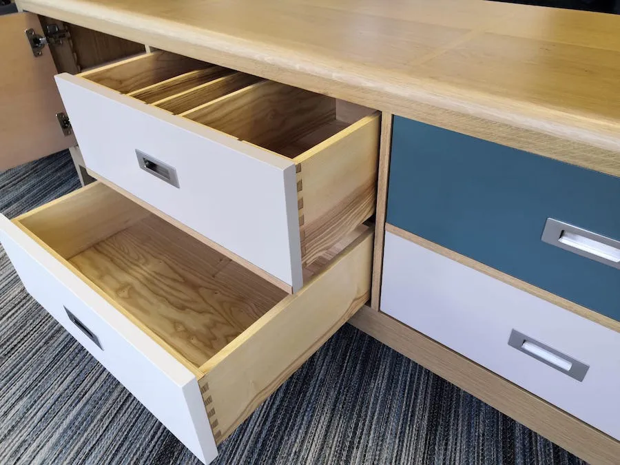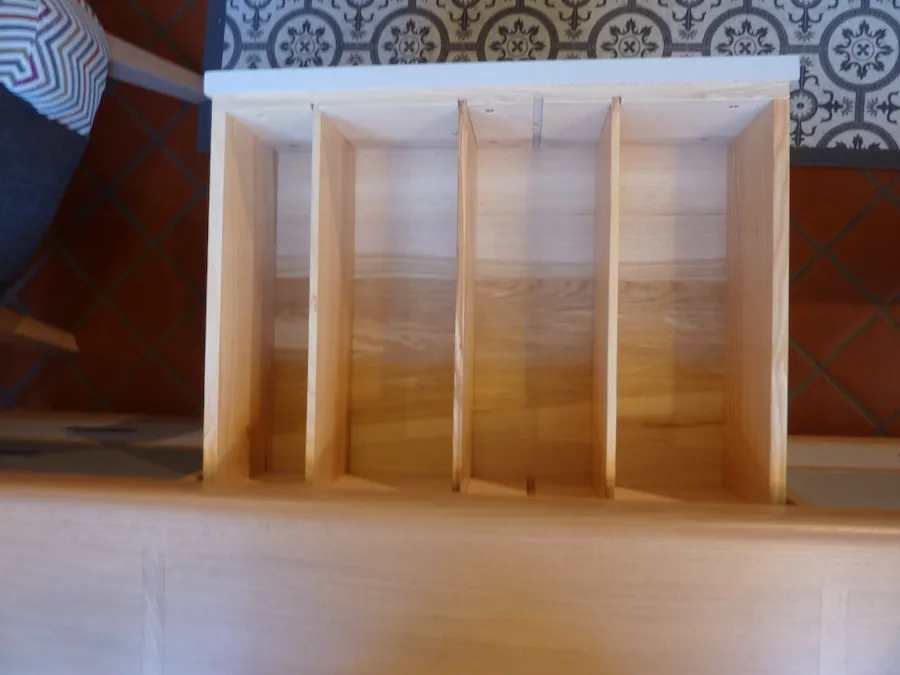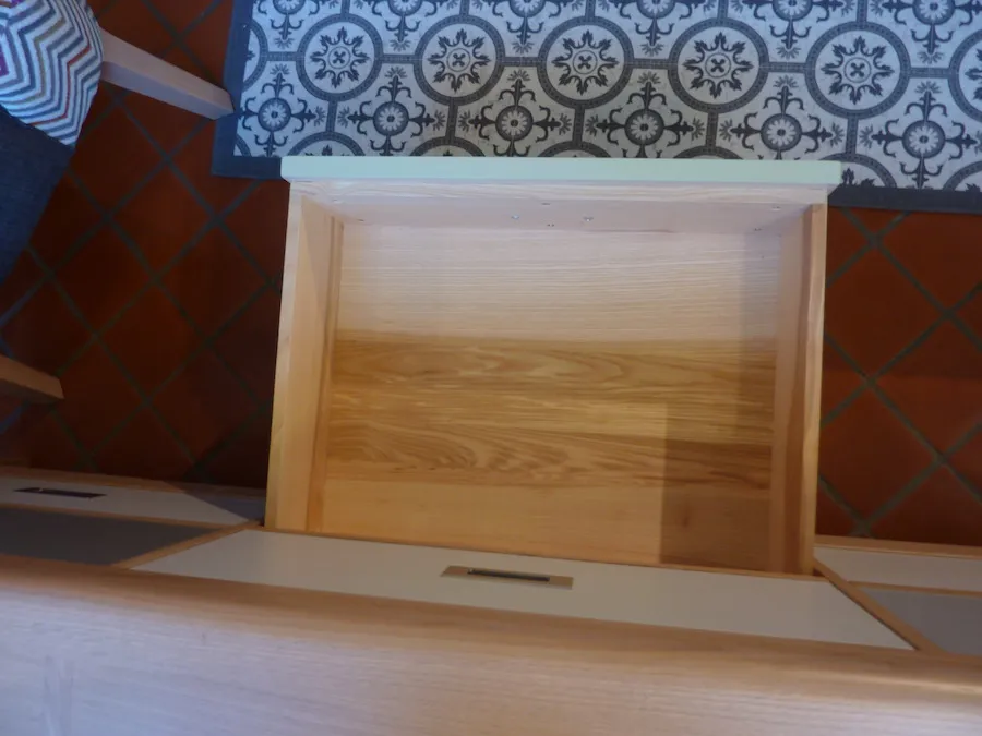 2 tiroirs sur coulisses métal , dimensions intérieures tiroir : L13,5 P48 H13,5 cm