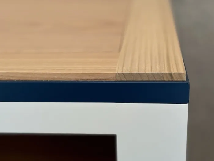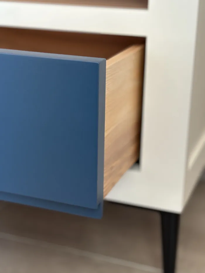 Finition peinte en ivoire et bleu.