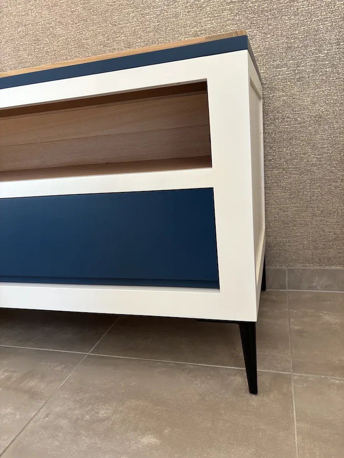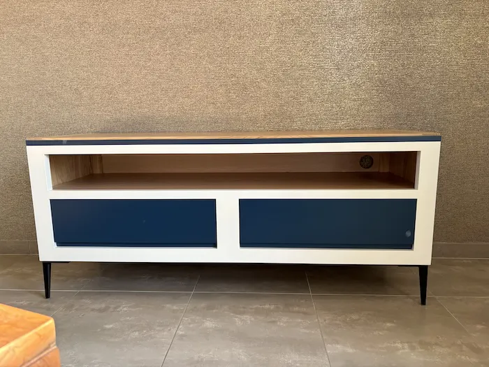 Meuble TV Ellipse Ivoire et bleu