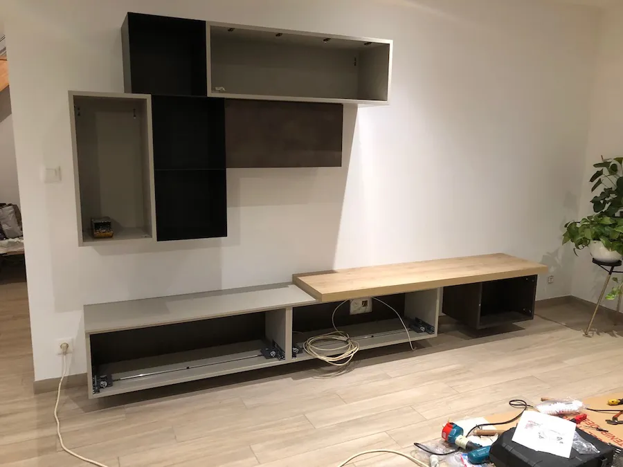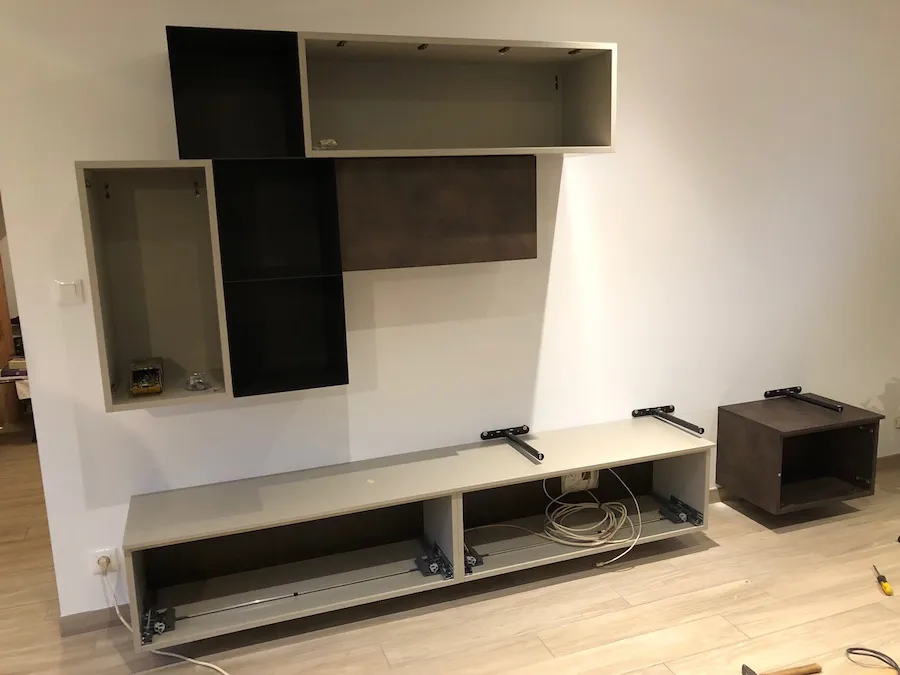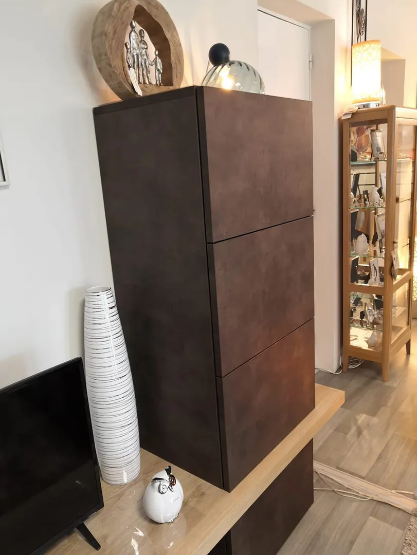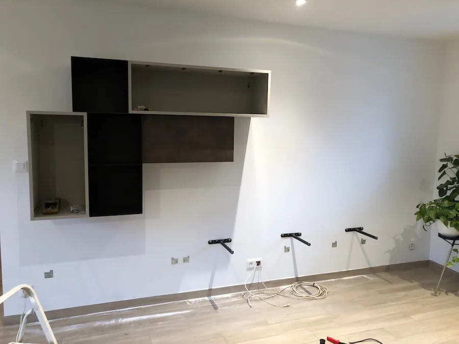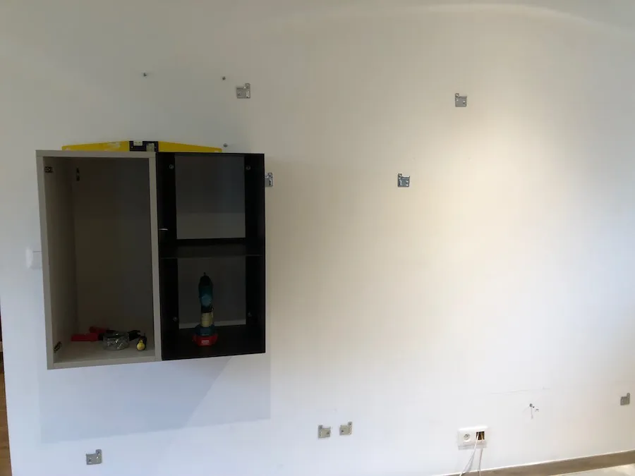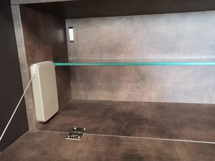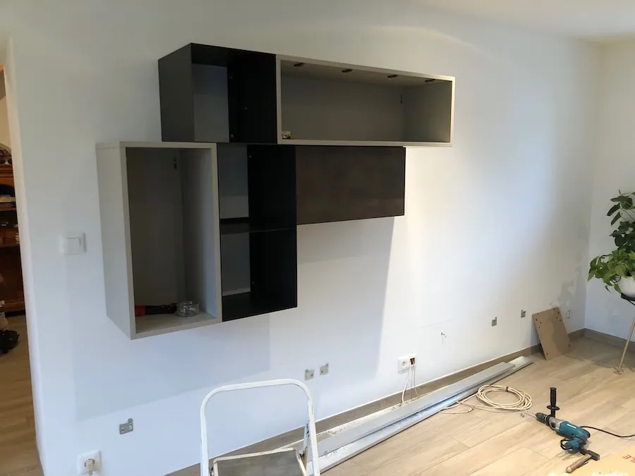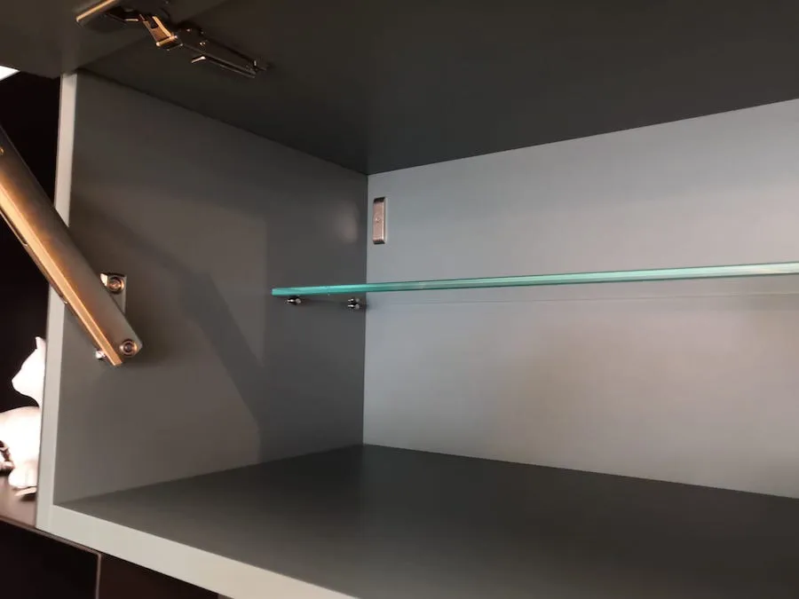 Meuble haut carré : partie droite : L32 P35,5 H68 cm avec 1 étagère en verre; partie gauche : 35,5 x 35,5 P37 cm