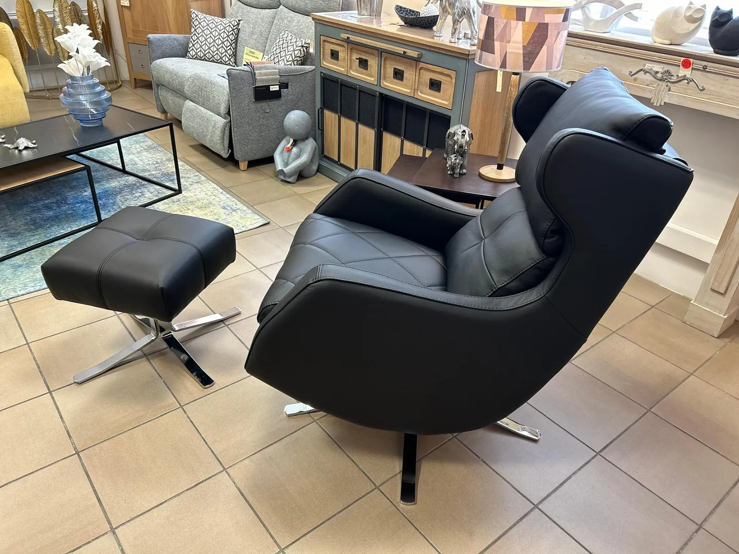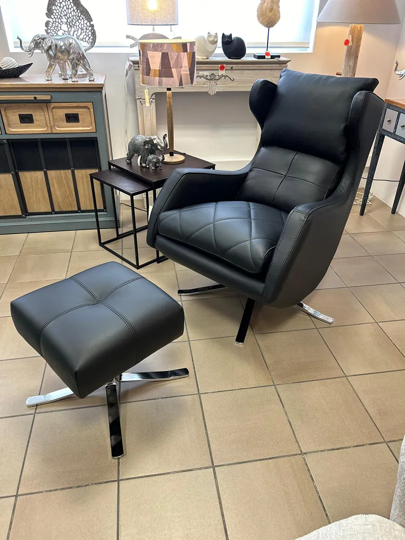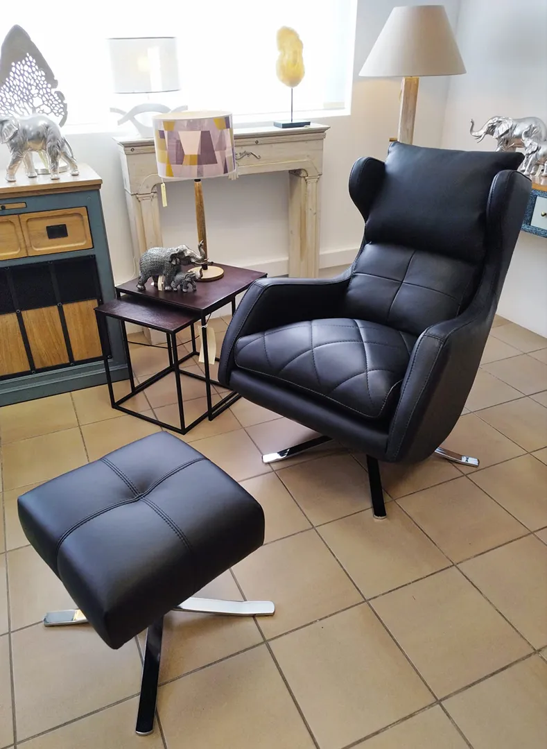 Très élégant revêtu de cuir noir, vous pouvez aussi l’envisager dans un autre coloris, ou en tissu.