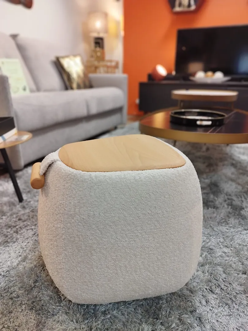 Le pouf Thalia est présenté avec le tissu boucle white 4, vous pouvez choisir un autre tissu dans notre boutique.