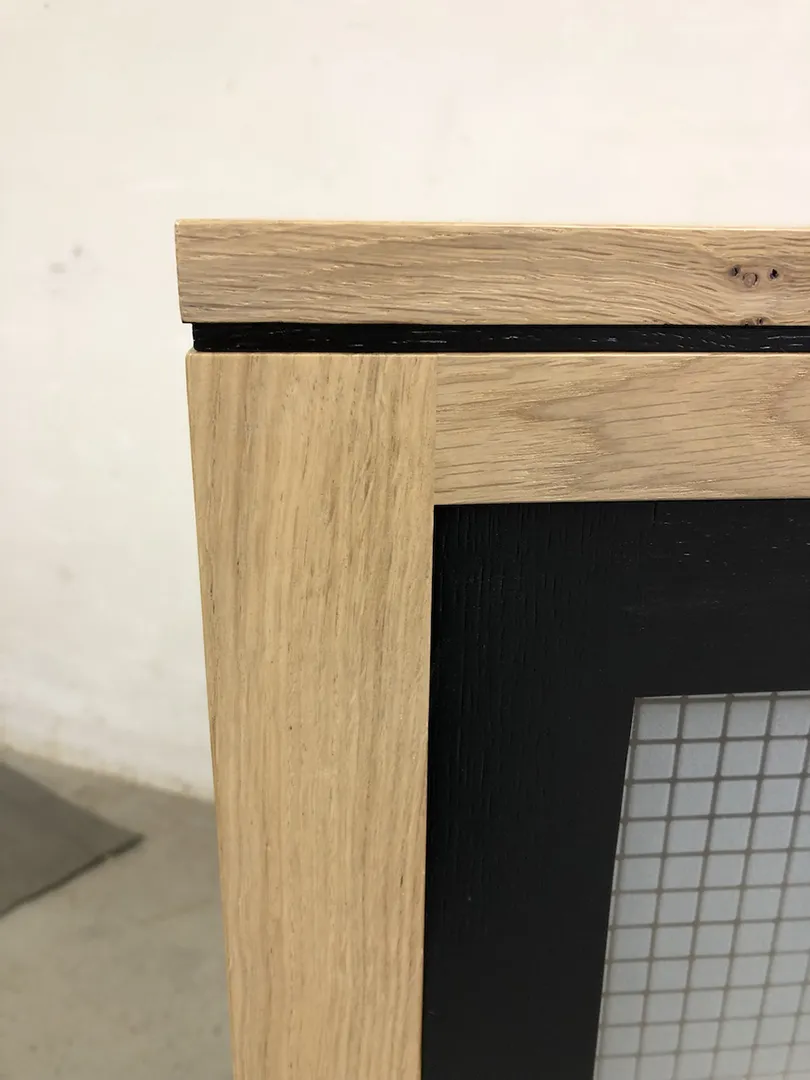 Finition teinte « brute mate » sur carcasse, peinte en noir mate, non vieillie