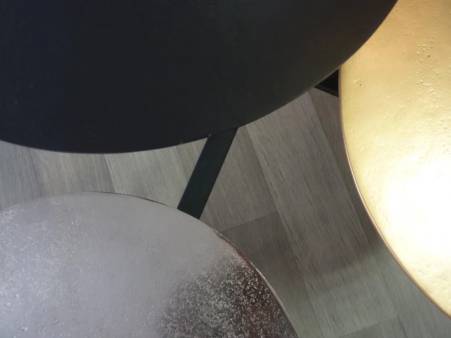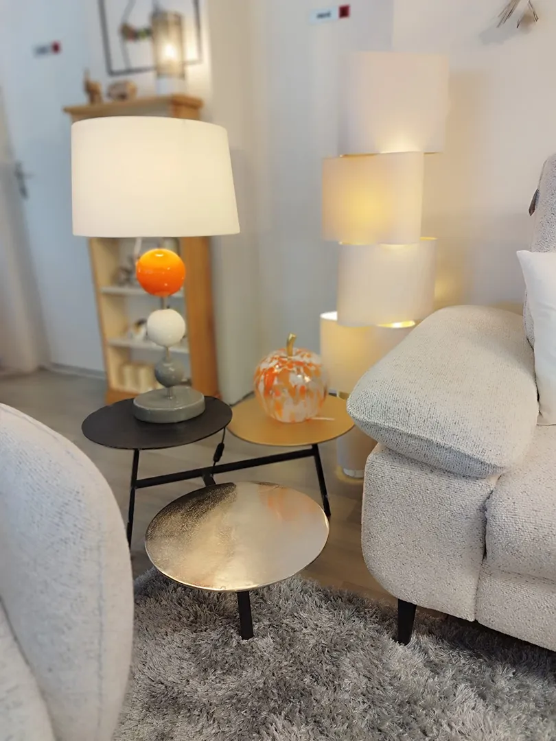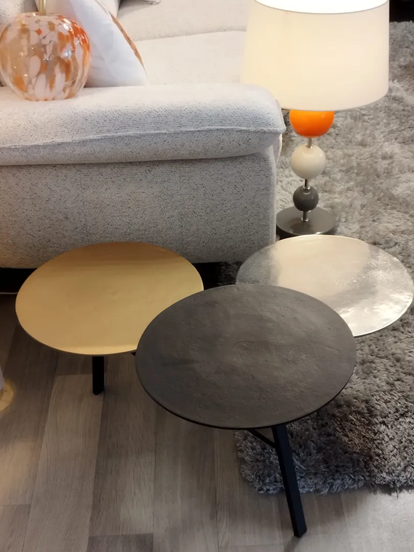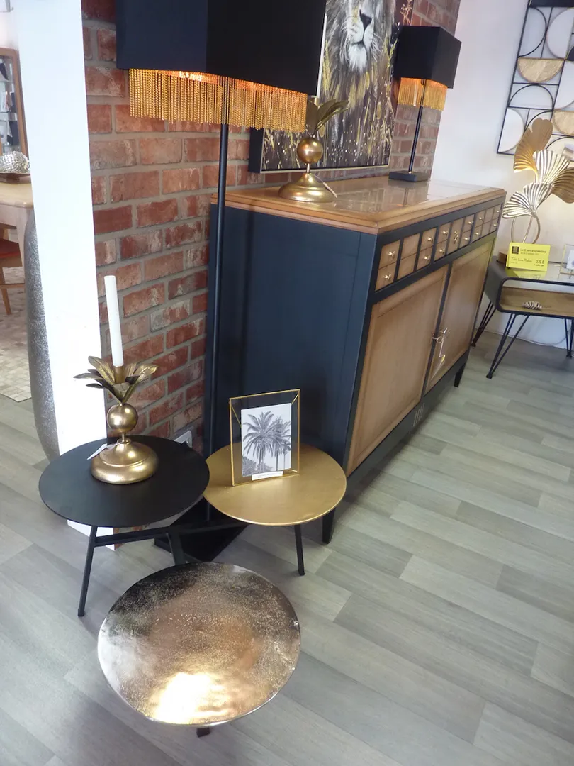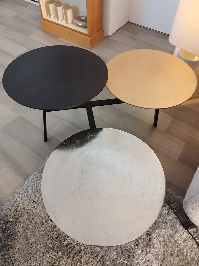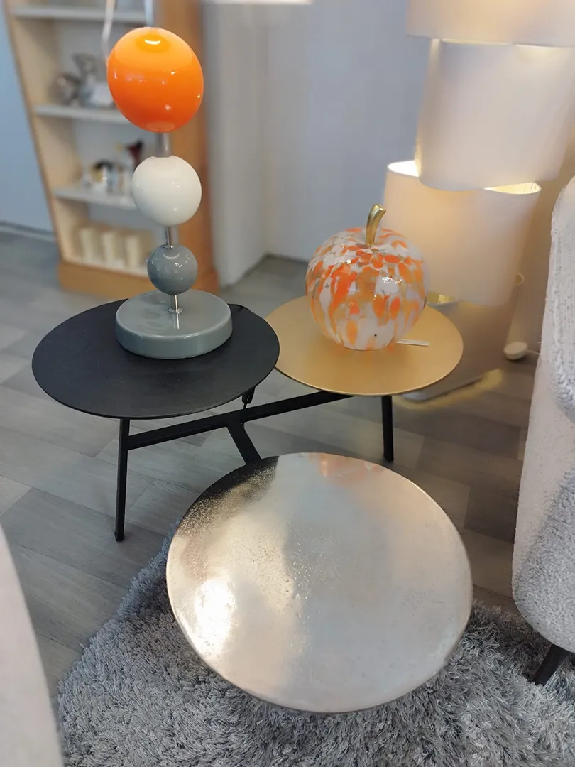 Table basse de salon Idole … toute son élégance réside dans le mariage des couleurs de métal. Originale, singulière.