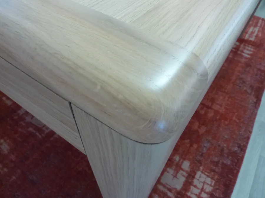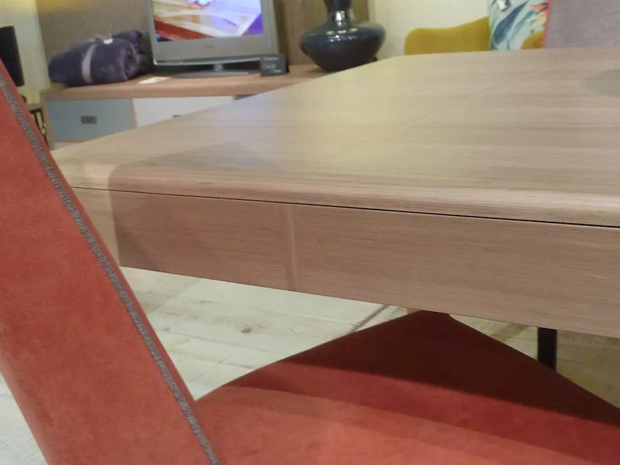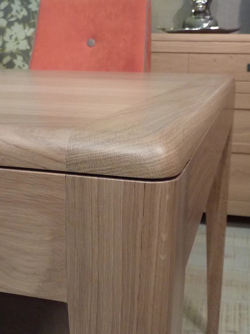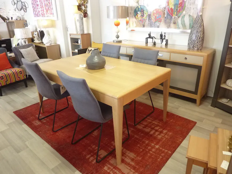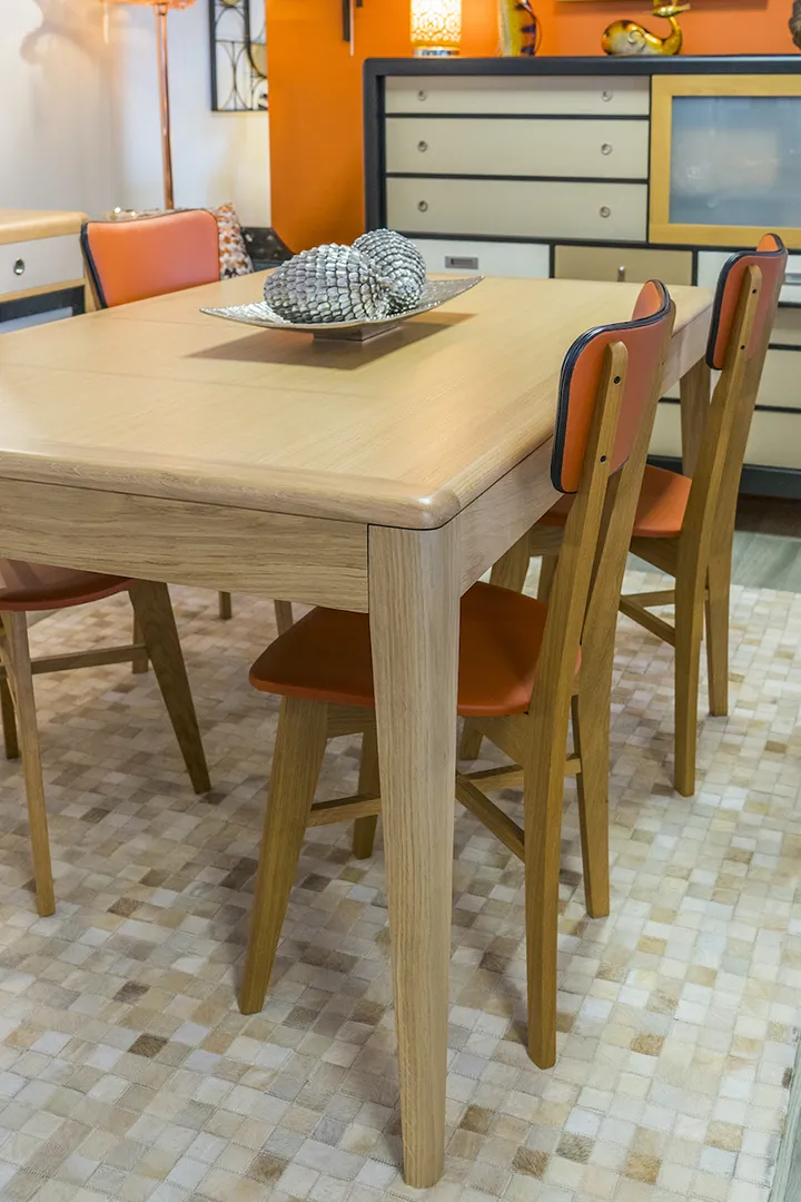 Très fonctionnelle en raison de son système d’ouverture synchronisée et ses 2 allonges rangées sous la table.