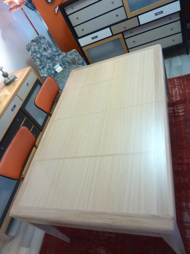 2 allonges plaquées « Papillon » de 50 cm (x 100) sont rangées sous la table.