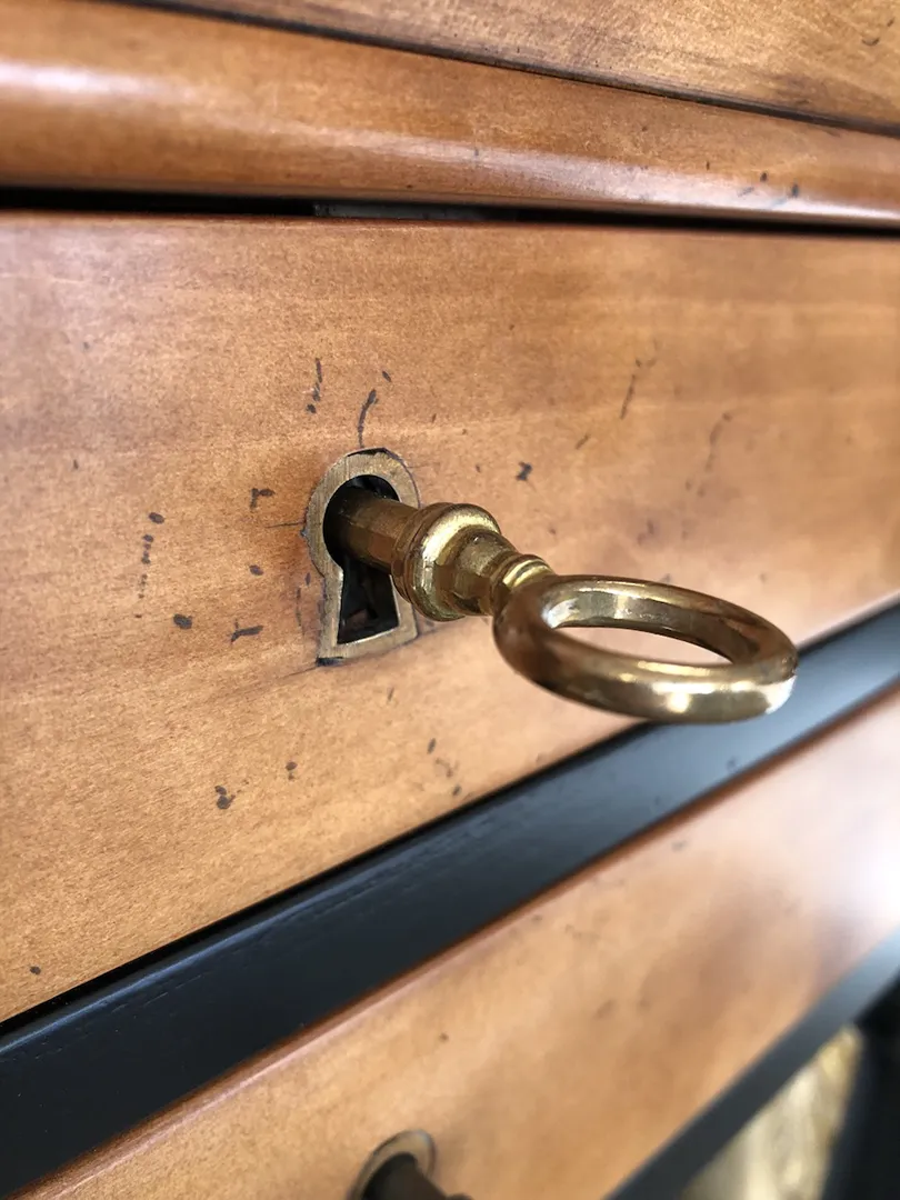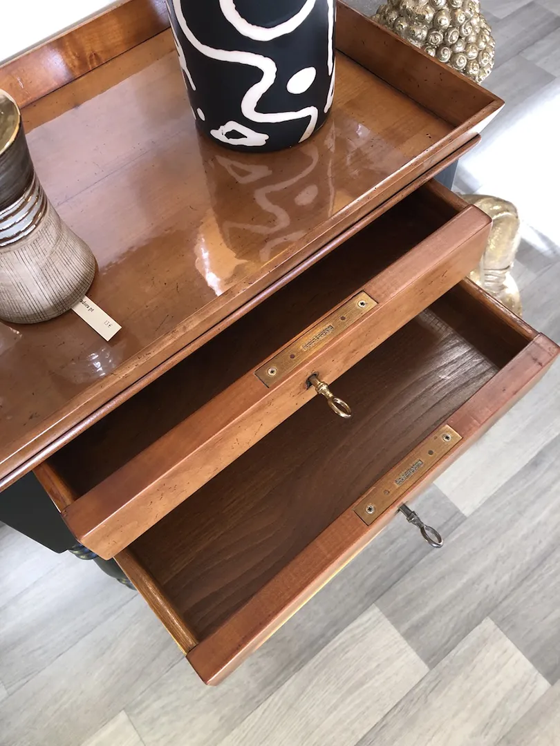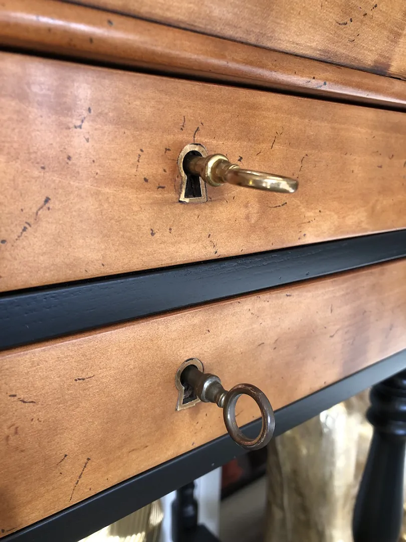 Tiroirs à queue d’aronde, assemblage tenon, mortaise et cheville. Conception résistante.