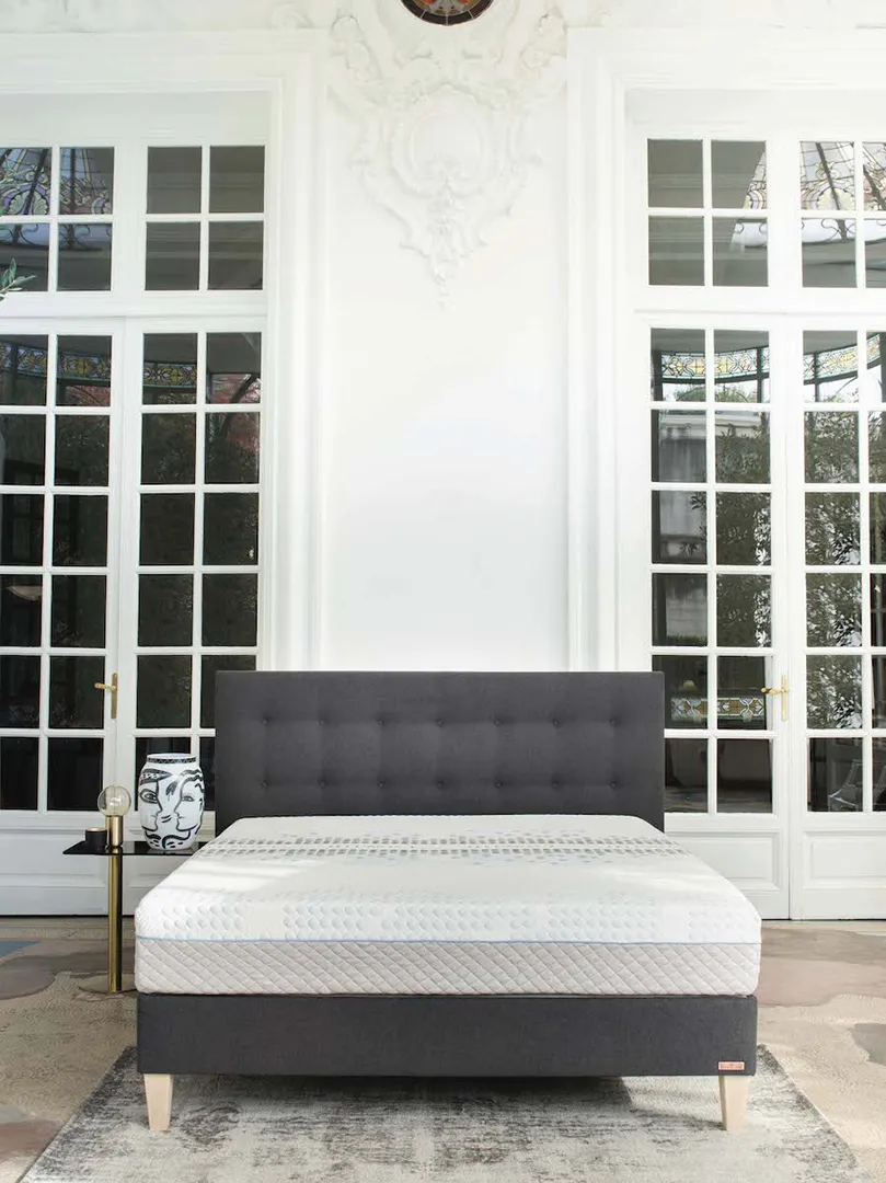 Tissu raffiné au toucher doux et à l’aspect laineux pour sommier et tête de lit.